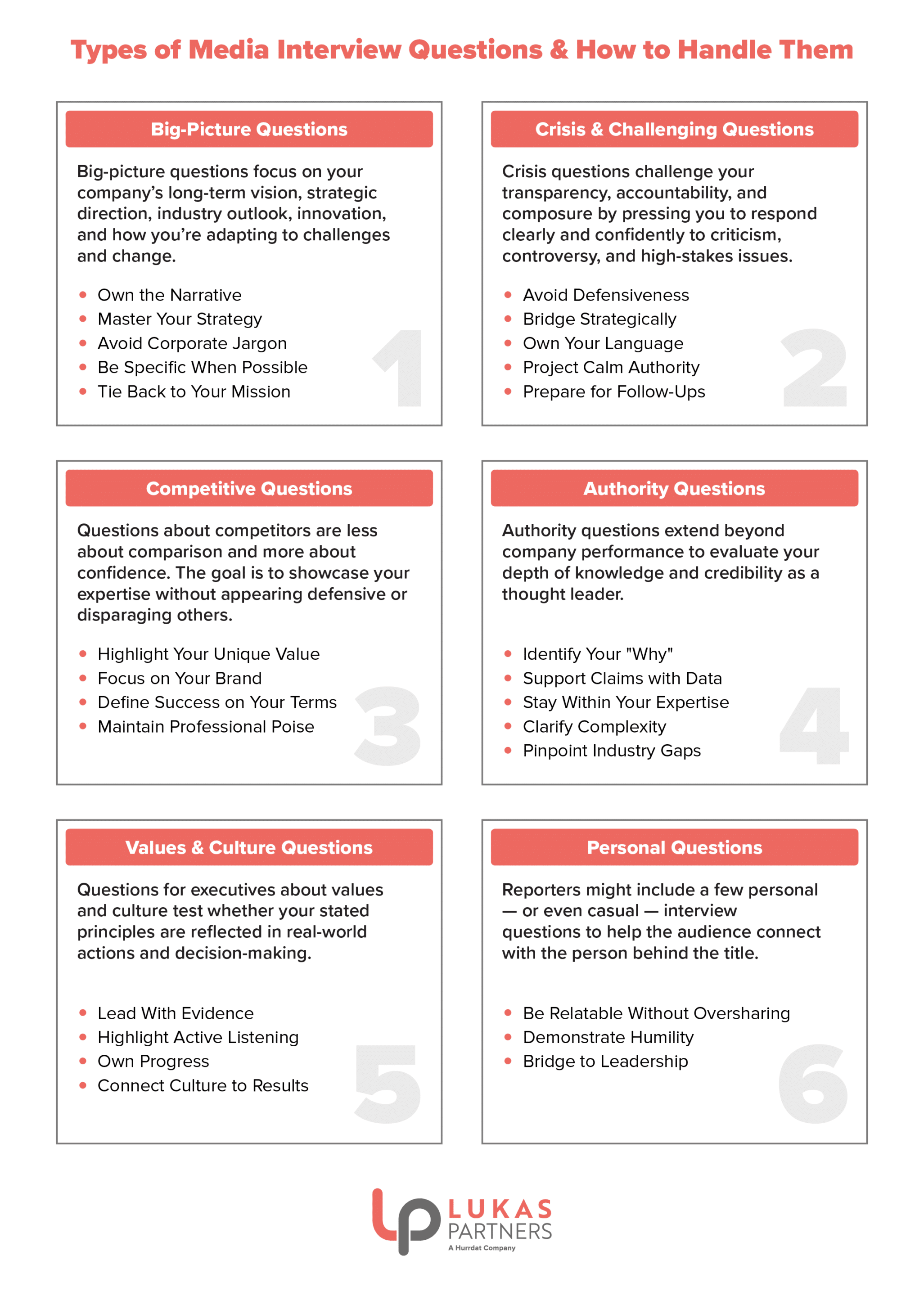 Responses to big-picture questions need to showcase strategic thinking and proactive leadership. Keep these media interview tips in mind: